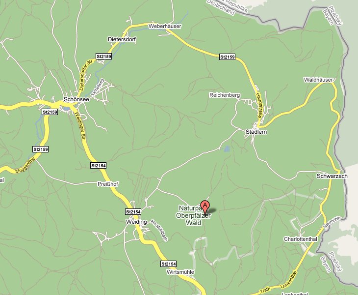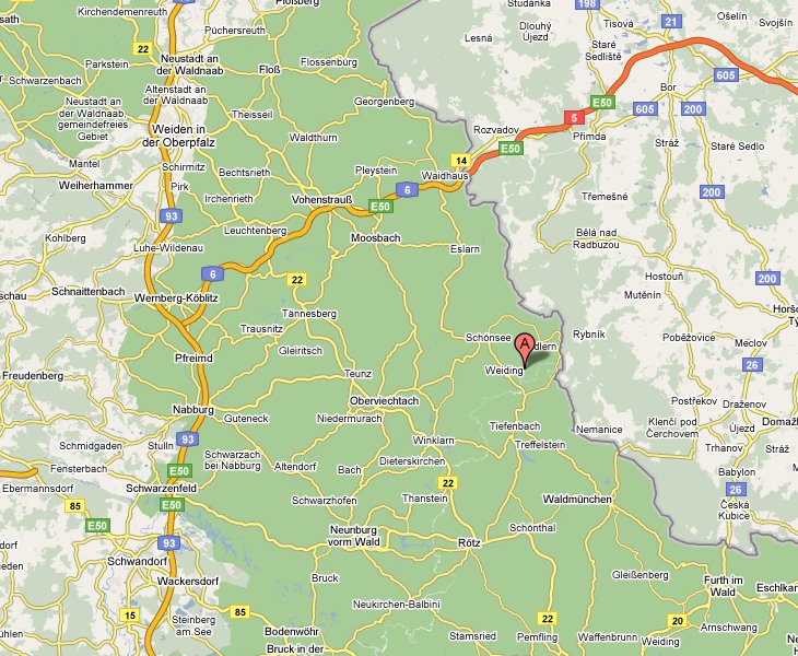 Anfahrt über A93 Richtung Oberviechtach, Richtung Schönsee / weiter Richtung Weiding
